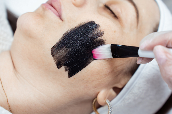 - Косметолог распределяет по коже клиента гель с наночастицами угля, оставляя экспозицию на несколько минут.